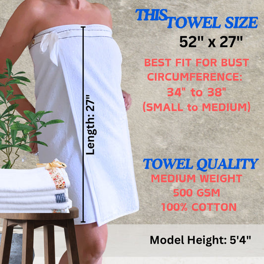 UWRAPT - Towel + Wrap All-in-One with Adjustable Tie Closure. No Hook & Loop. No Elastic. No Buttons. No Snaps. Simply Wrap, Tie, & Go! | 100% Cotton, Soft, Absorbent, Lightweight for After Shower, Spa, Sauna, Pool, Travel