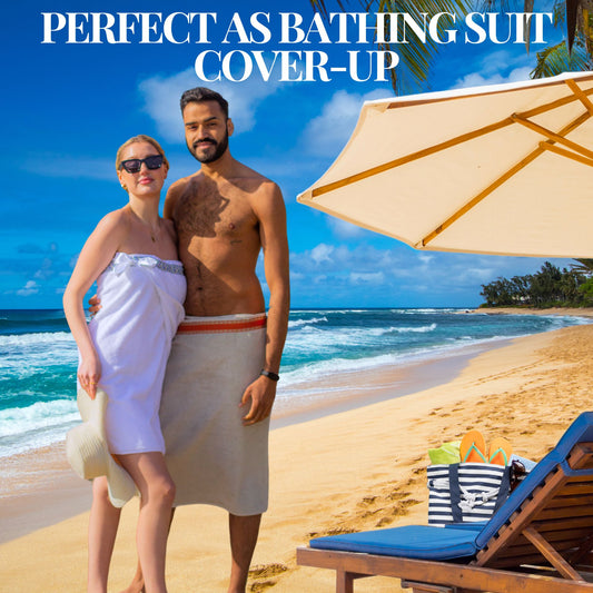 UWRAPT - His & Hers Towel + Wrap All-in-One with Adjustable Tie Closure. No Hook & Loop. No Elastic. No Buttons. No Snaps. Simply Wrap, Tie, & Go!